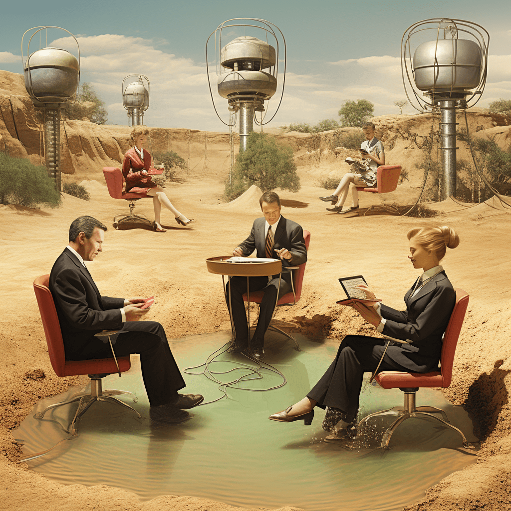 Midjourney: a utopian stock photo of communication professionals reskilling for different kinds of jobs once their roles are obsolete